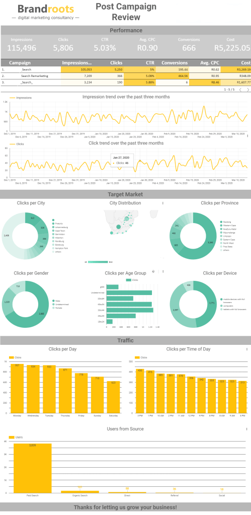 - Together with monthly optimisations, you can expect a monthly report to see how your campaigns are performing.